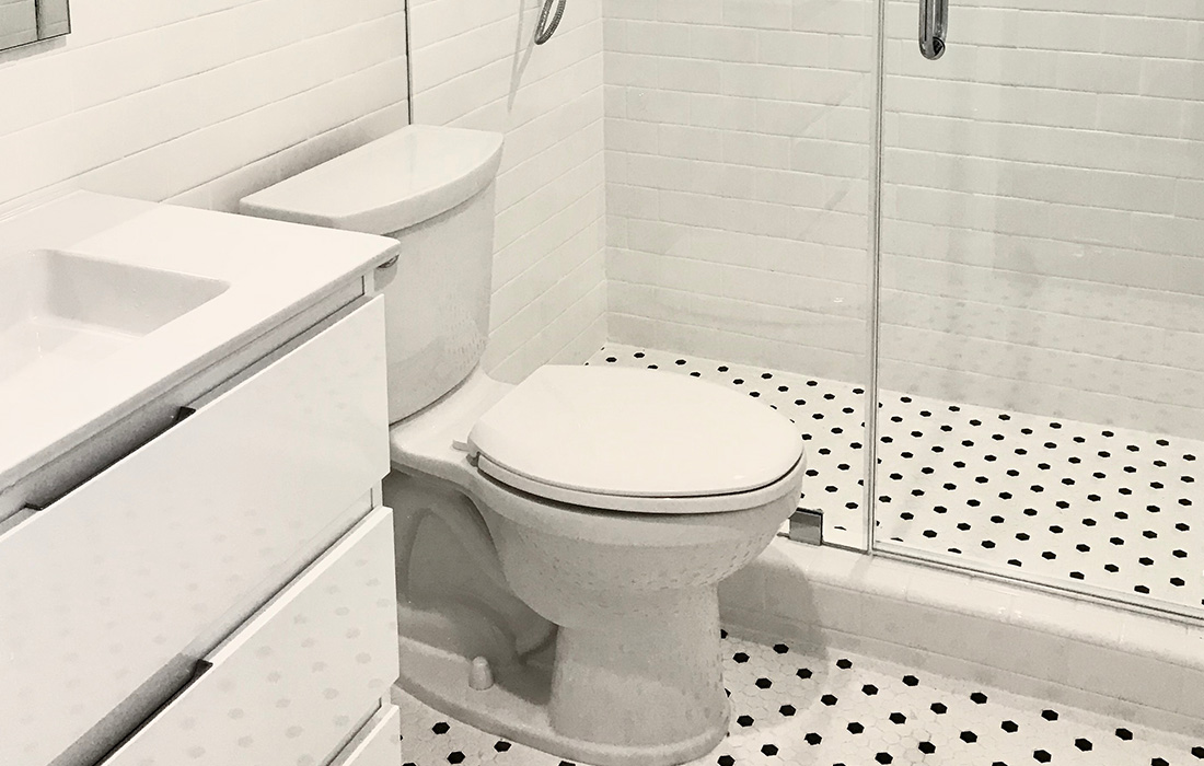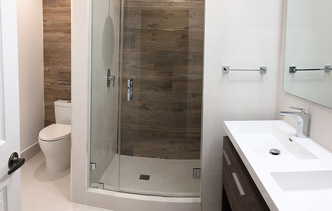 Complete bathroom design and renovation that included the installation of tile on walls and floor as well as the glass shower enclosure, new electrical/lighting, and plumbing.