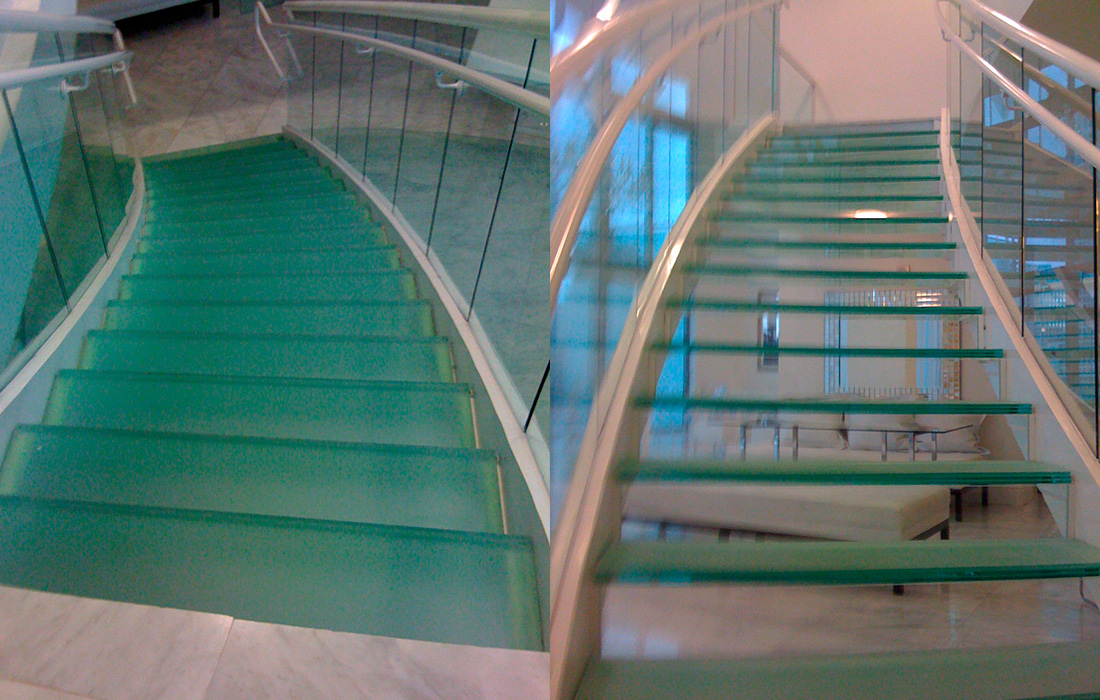 Glass work that included design, engineering, production and installation of Stainless steel stair structure and glass steps and stainless steel hand rails. ​